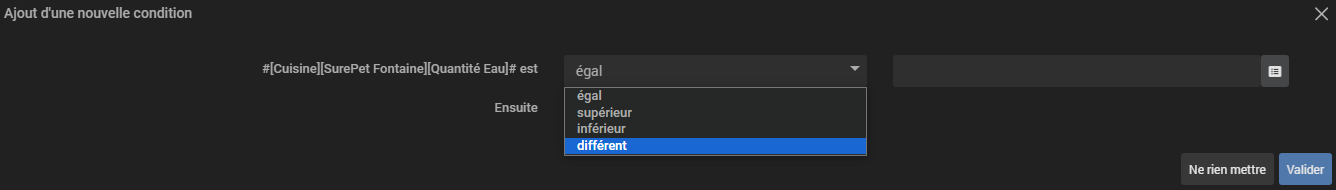 De même dans le champs de droite, si on saisit une valeur et que l’on valide celle-ci n’est pas reprise dans la condition, on a juste la commande avec le signe sélectionné.