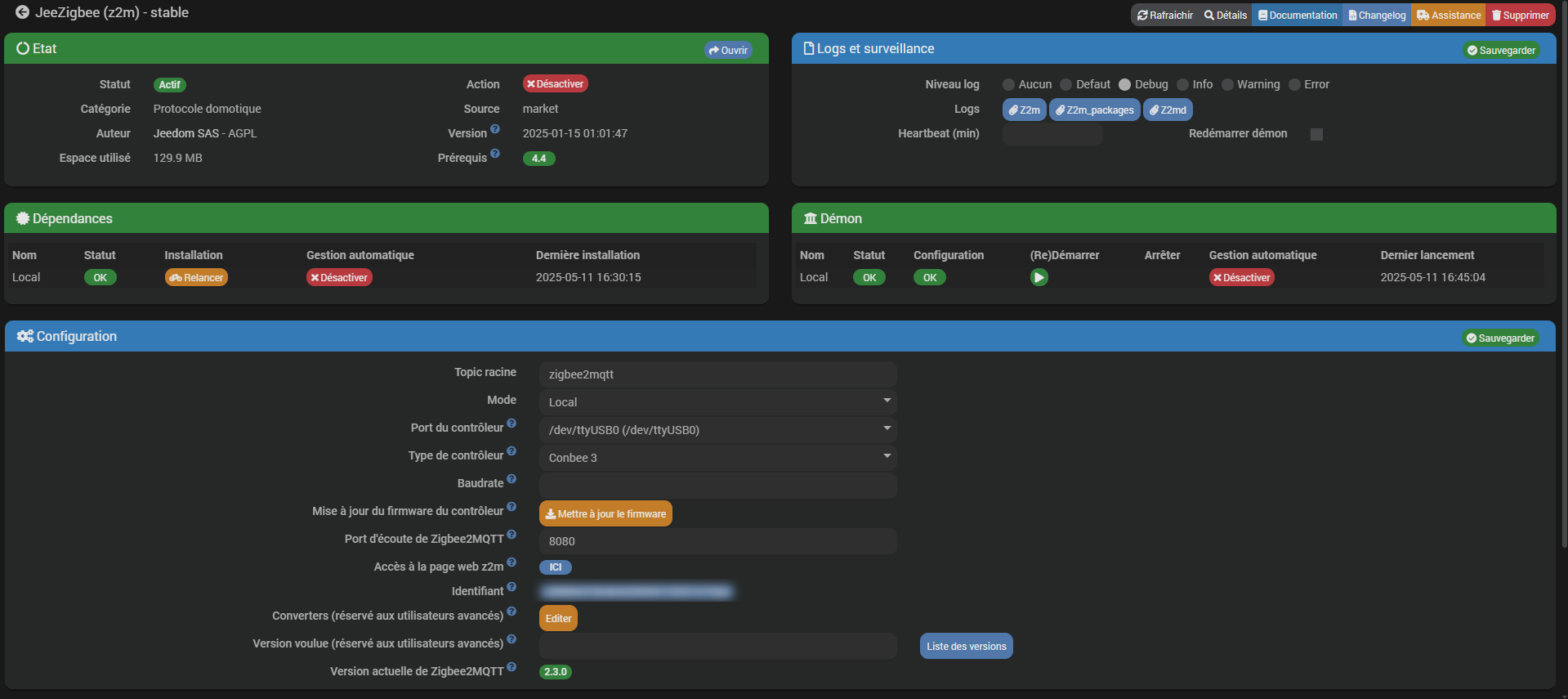Pour la clé c’est une conbee3 neuve avec mise à jour du dernier firmaware…