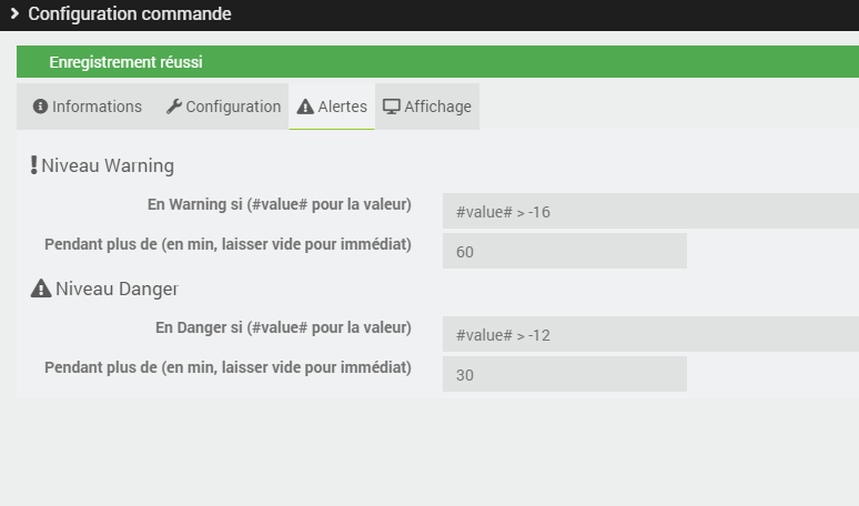 J’ai donc positionné une alerte dans la configuration de la commande « température », ça fonctionne nickel.
