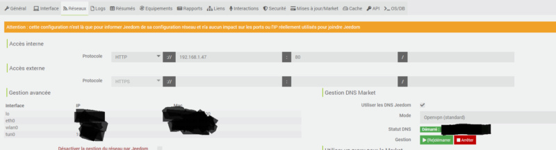 sinon vérifiez la configuration réseau de Jeedom (Réglages/Système/Configuration/Réseau/Accès interne) et assurez vous d’avoir jeedom sur le port 80