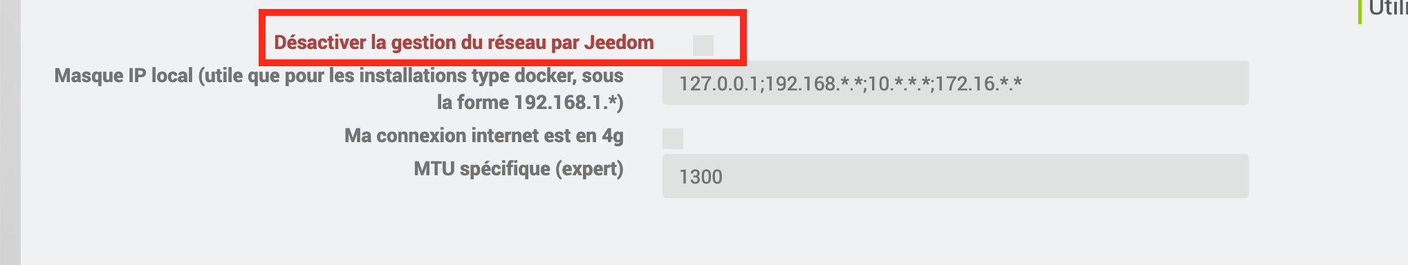 Serait-il possible d’aligner « Désactiver la gestion du réseau par Jeedom » par rapport au texte dessous