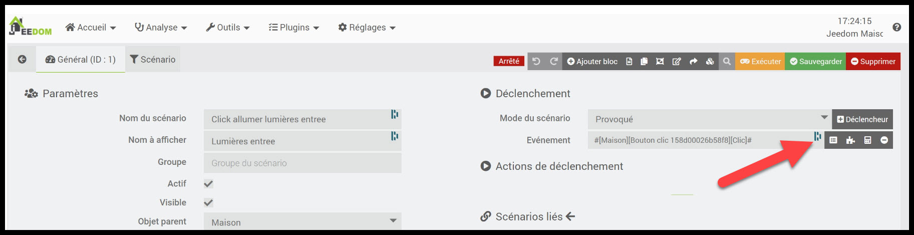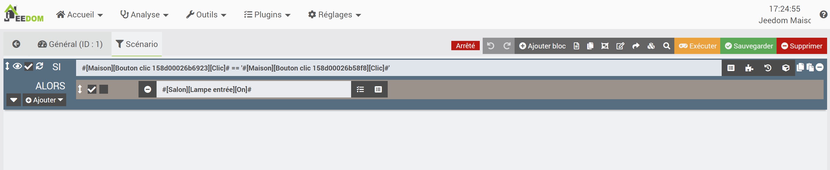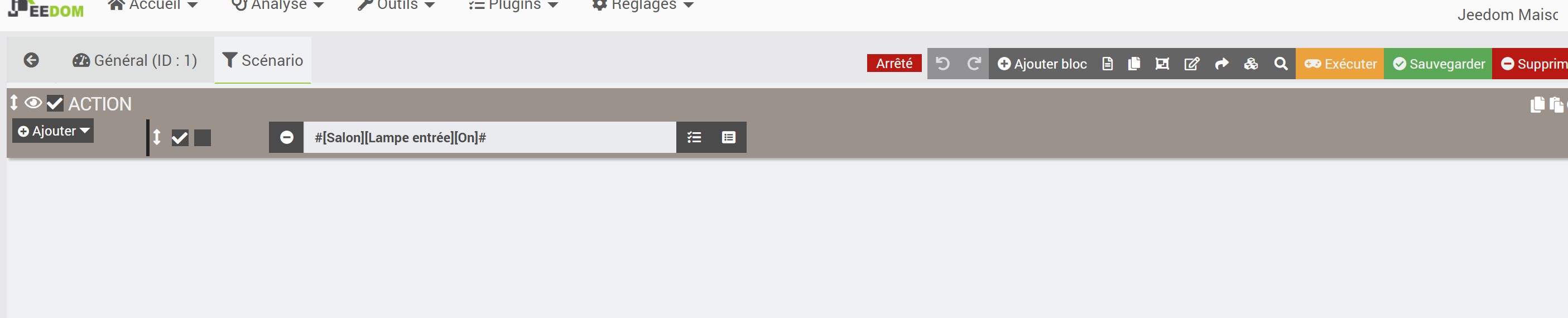Tu n’a pas besoin de mettre un SI, tu as un déclencheur, tu dois mettre uniquement la commande d’allumage de ta lampe.