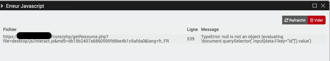 TypeError: null is not an object (evaluating 'document.querySelector('.input[data-l1key="id"]').value')
