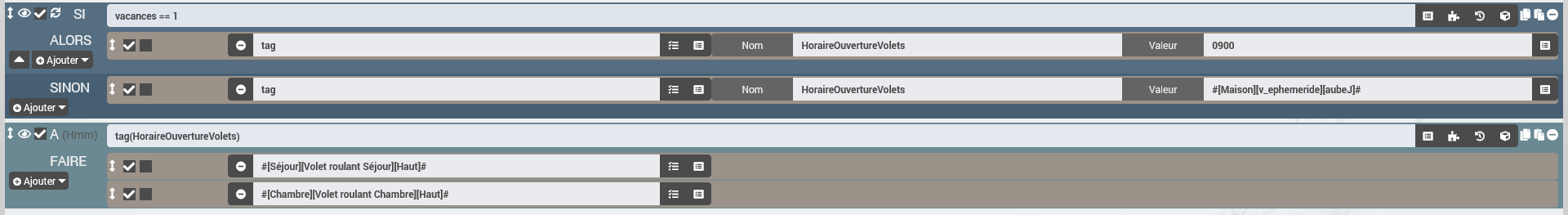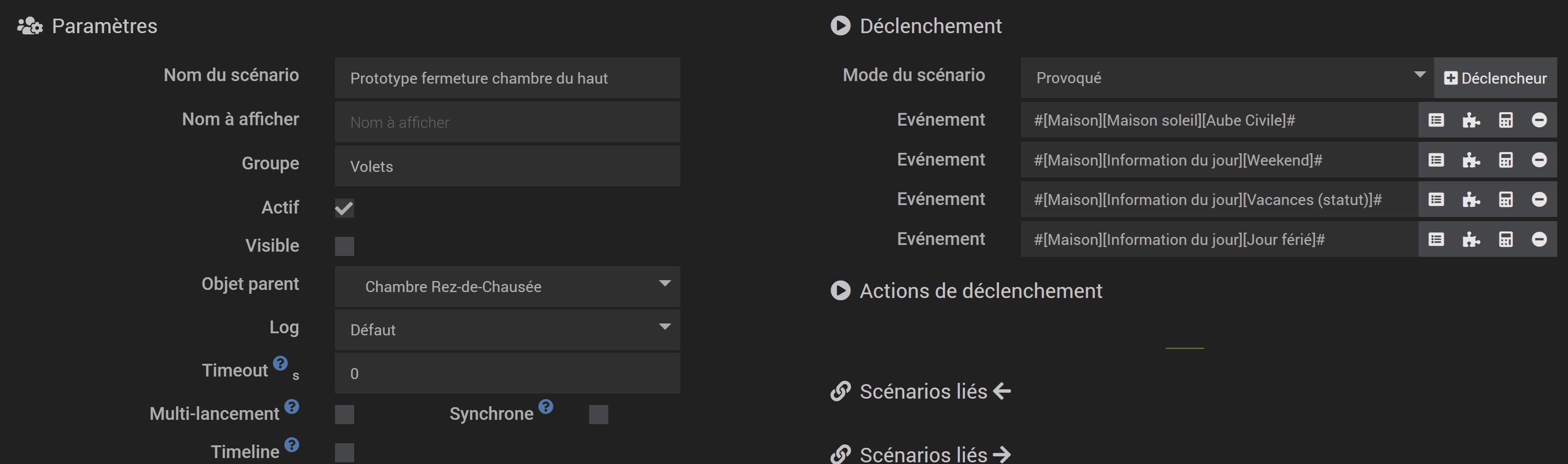 Je souhaiterais simplifier mes scénarios d’ouverture et de fermeture de volets roulants pour les mercredis, samedis, dimanches, vacances scolaires et jours fériés.