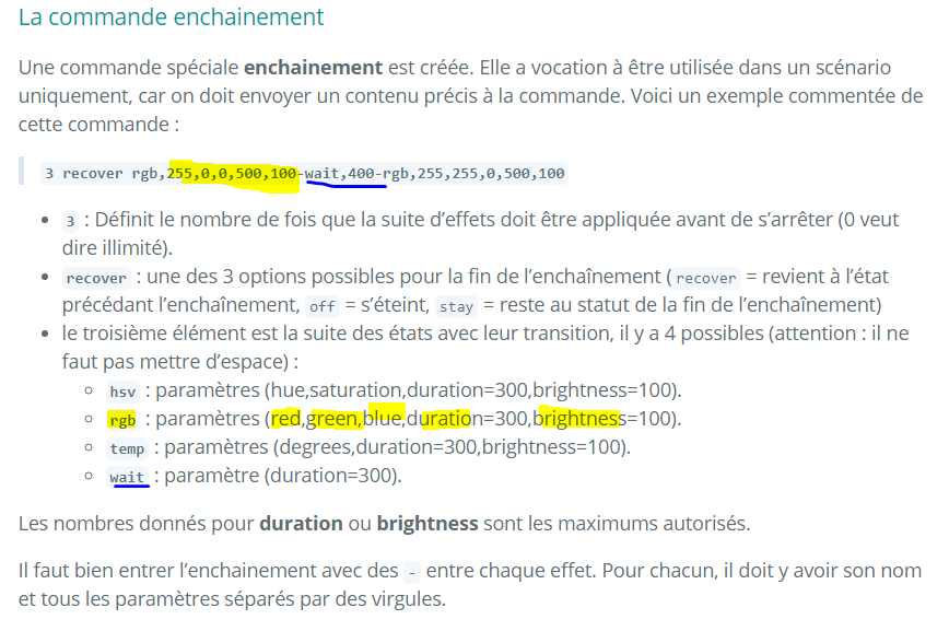 Je cherche à contrôler mes ampoules couleur Yeelight via scénario avec la possibilité d’utiliser des enchaînements.