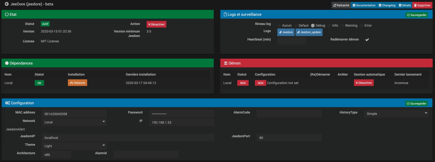 Lorsque je désactivai/activai le plugin, il perd l’@MAC , le password et le log level mais garde bien l’IP… incompréhensible
