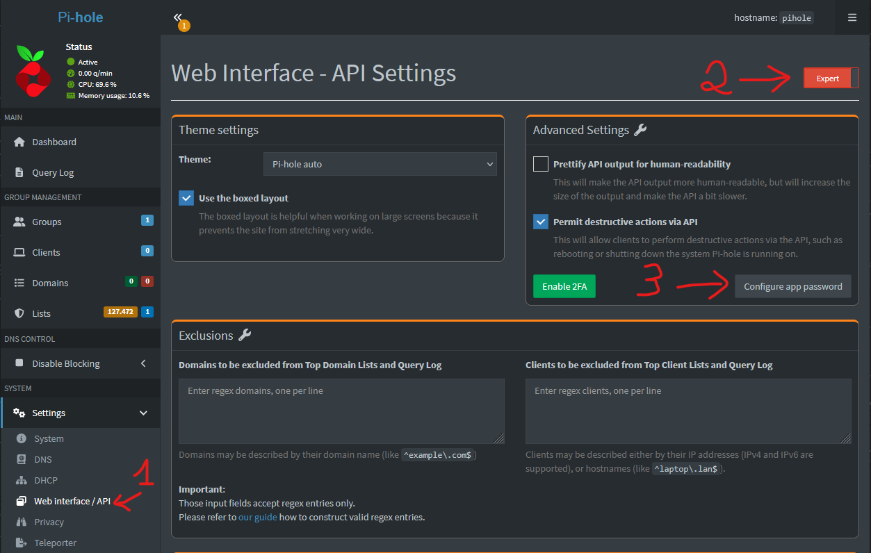 Je ne retrouve même pas dans Pihole ou trouver la clé Api