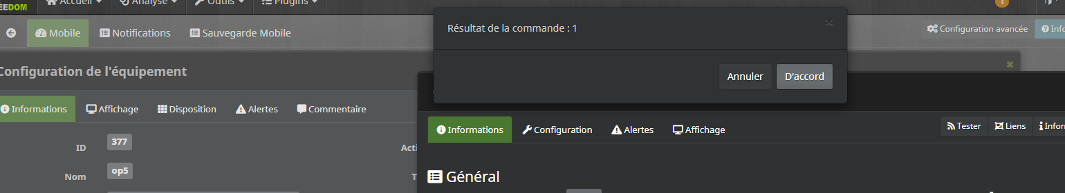 ton geofence fonctionne très bien mais il y a un souci sur Jeedom qui n’arrive pas a mettre en place la cmd. je te dirais de supprimer ton point de géolocalisation sur ton mobile. puis si la commande ne c’est pas supprimer toute seul sur ton plugin mobile tu la supprime (plugin beta permet de le faire facilement)