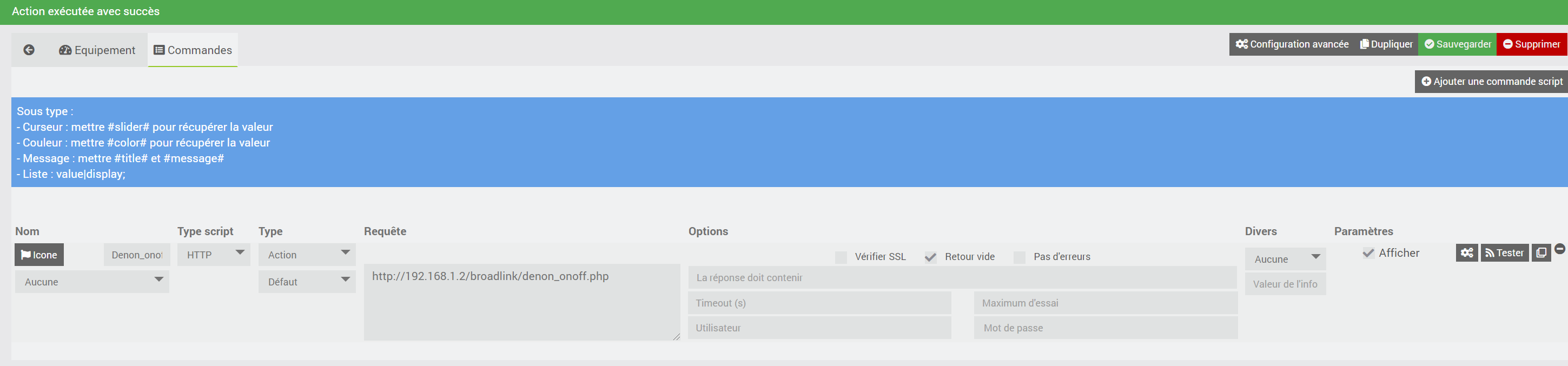 Je possède un Broadlink RM4C Mini pour simuler la télécommande d’un ampli Denon.