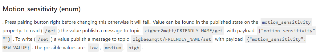Je n’arrive pas a changer le niveau de détection du capteur de mouvement depuis le plugin Z2M, seriez vous me conseiller svp ?