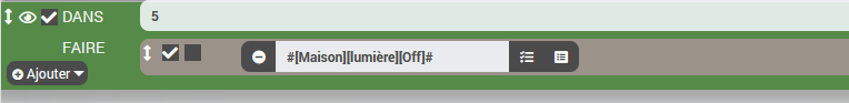 va éteindre dans 5 min et à chaque nouvelle exécution le scénario va s’exécuter, annuler le bloc DANS précédent et le reprogrammer dans 5min.