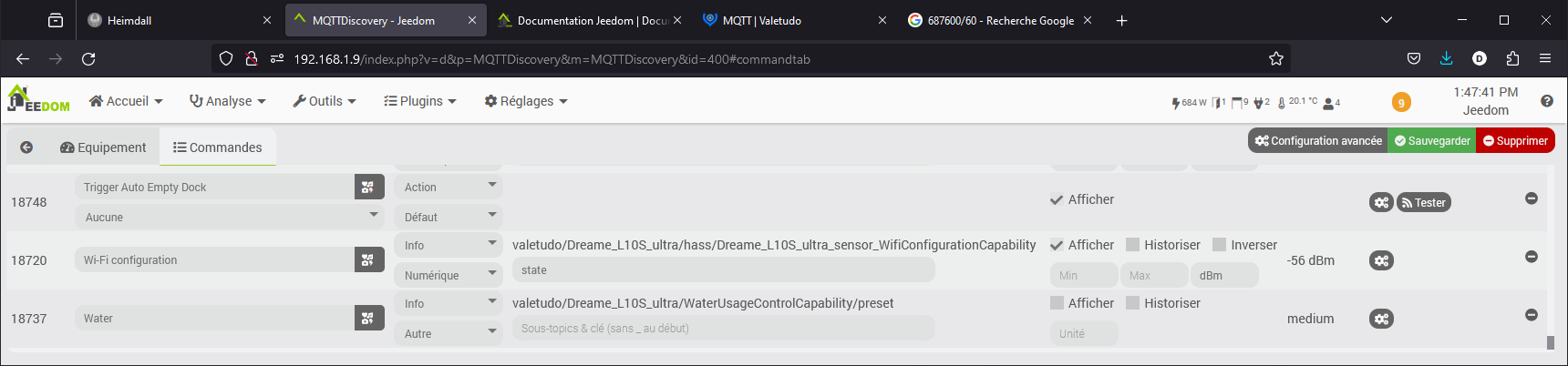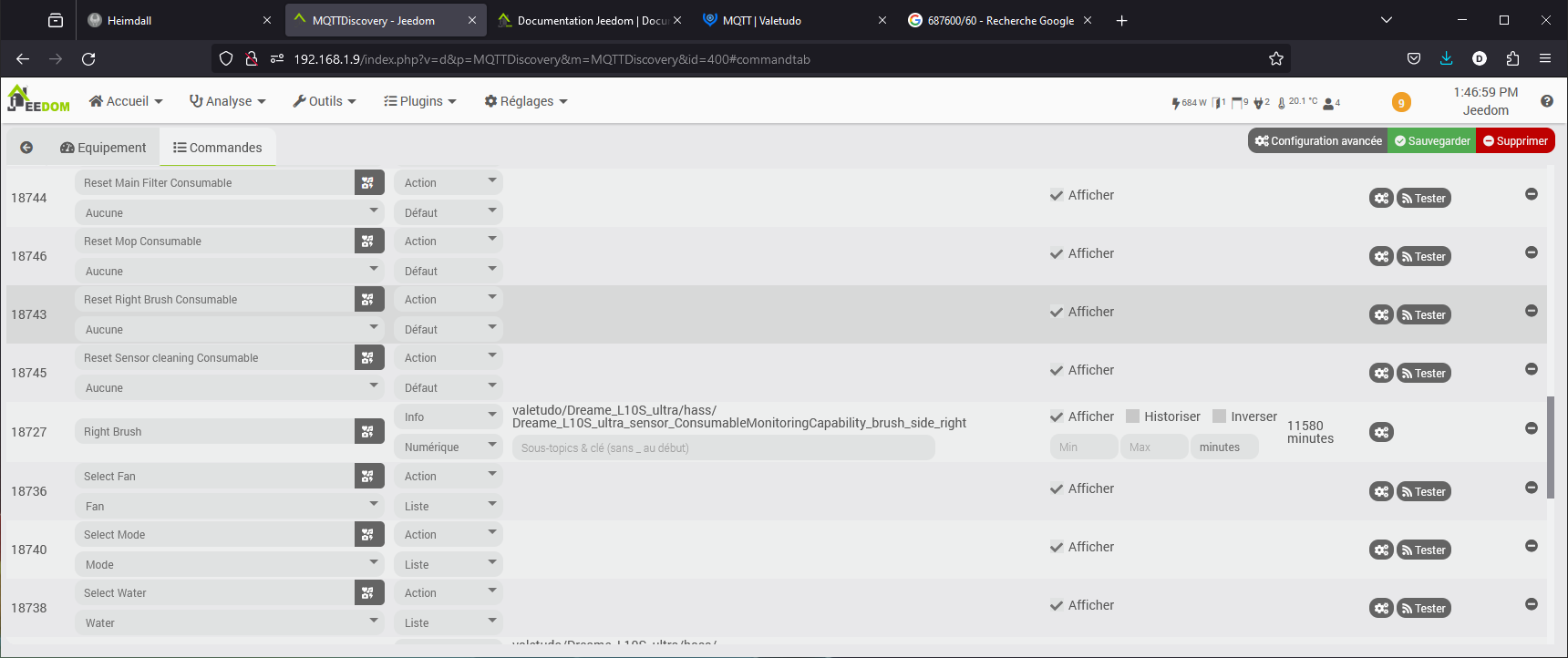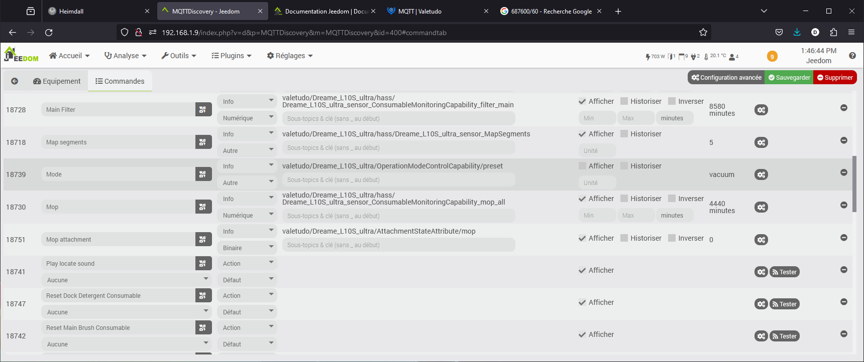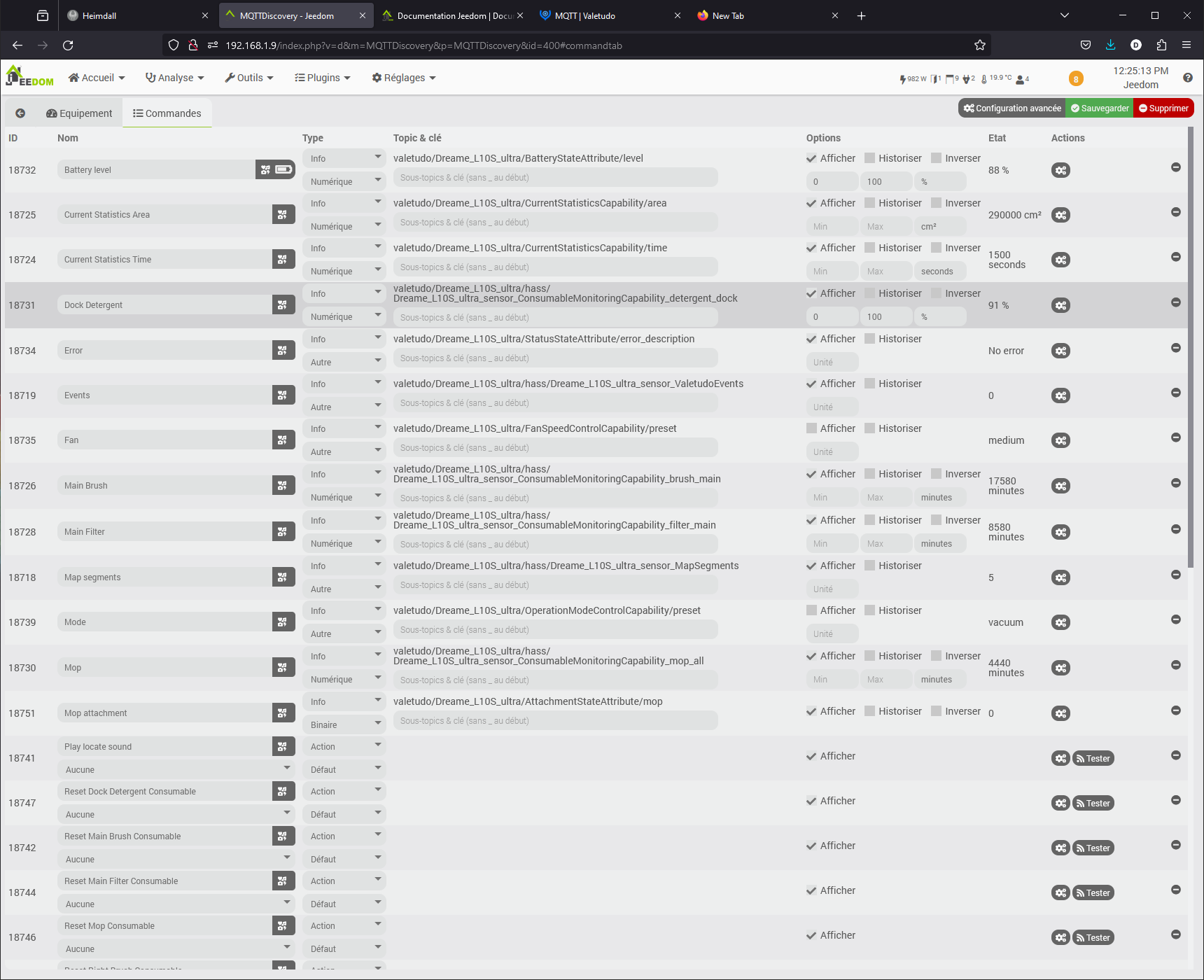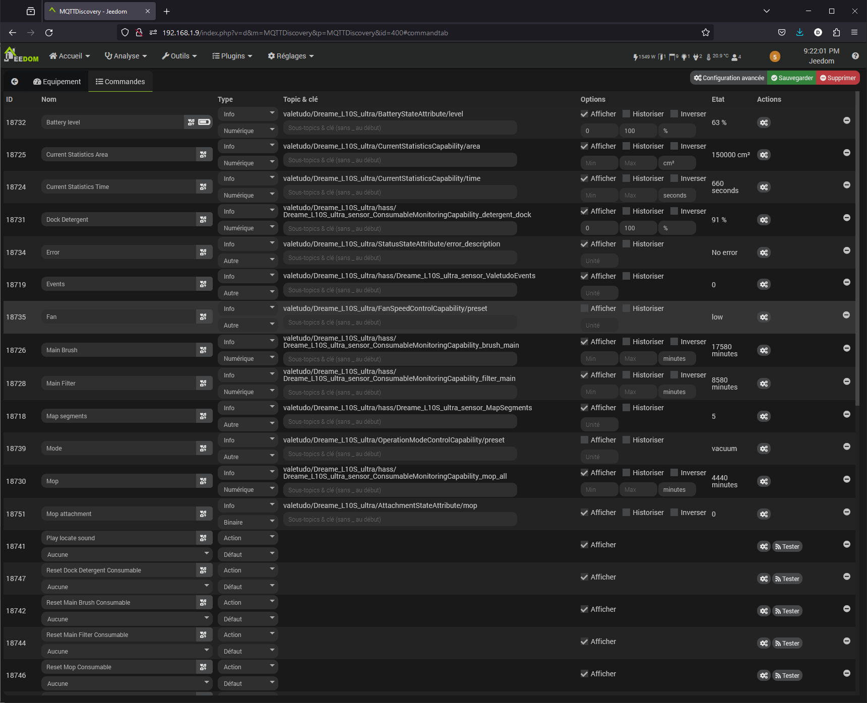 Bêta installée et recherche activée. Mqtt discovery a trouvé mon roborock v1 sans lui fournir toutes les commandes toutefois, il manque les état des brosses et leur action de reset ou encore le fan speed. Mais il n’a pas trouvé le Dreame l10s ultra par contre, j’ai pourtant désactivé ce dernier dans mqtt2 pour ne pas faire parasite.
