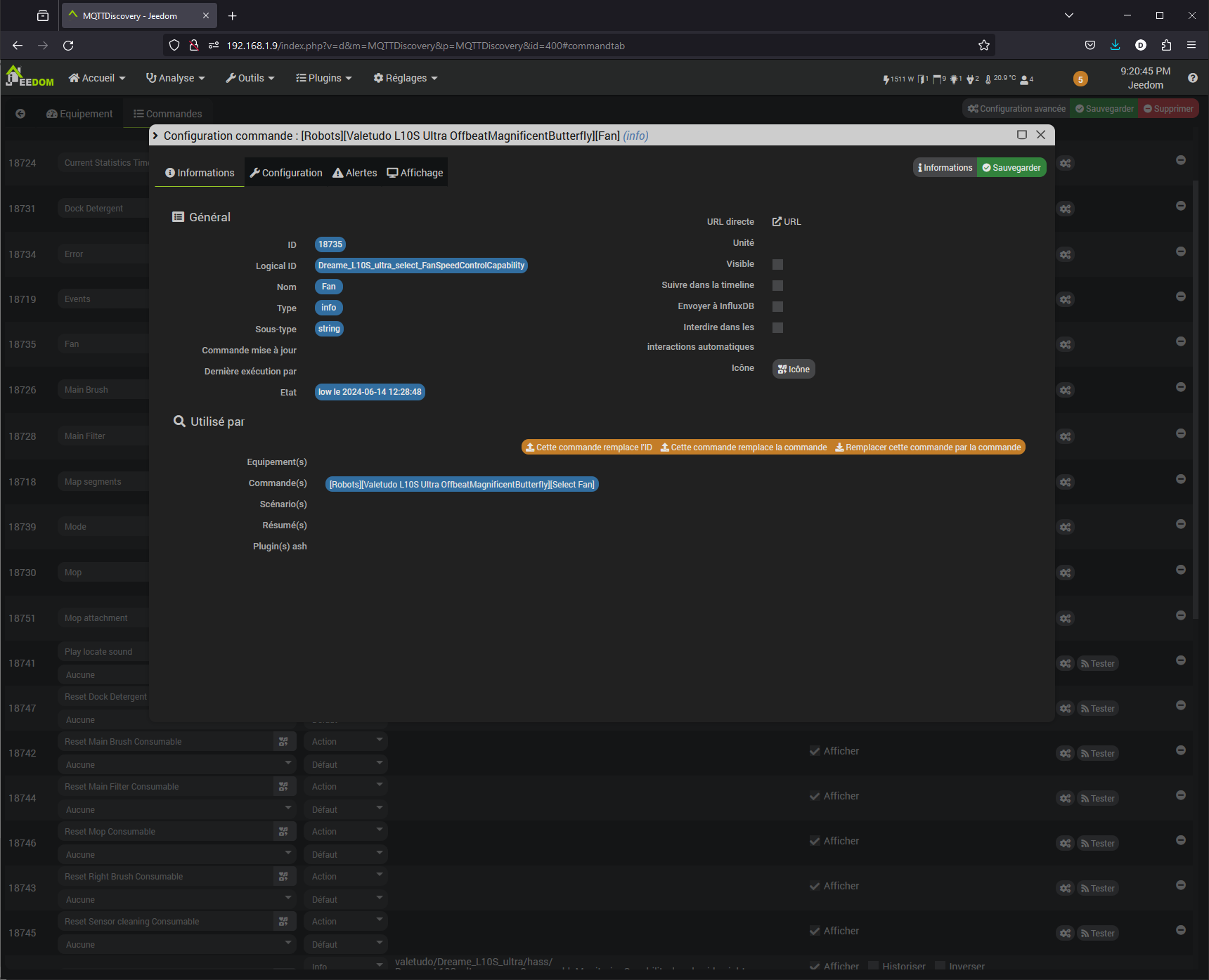 en fait ca m’aiderait d’avoir la config complète de l’équipement, le bouton « info de découverte » dans l’onglet général de l’équipement