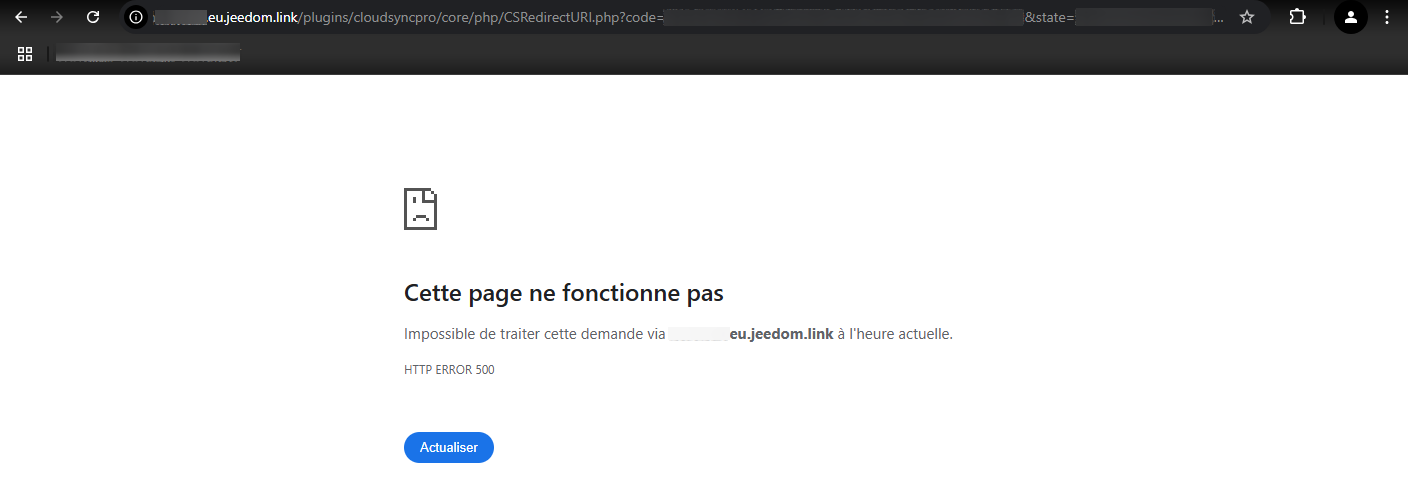 Sur mon environnement de dev (Debian 12 / Jeedom 4.5 beta), l’association ne se fait pas J’obtiens en permanence la page suivante :