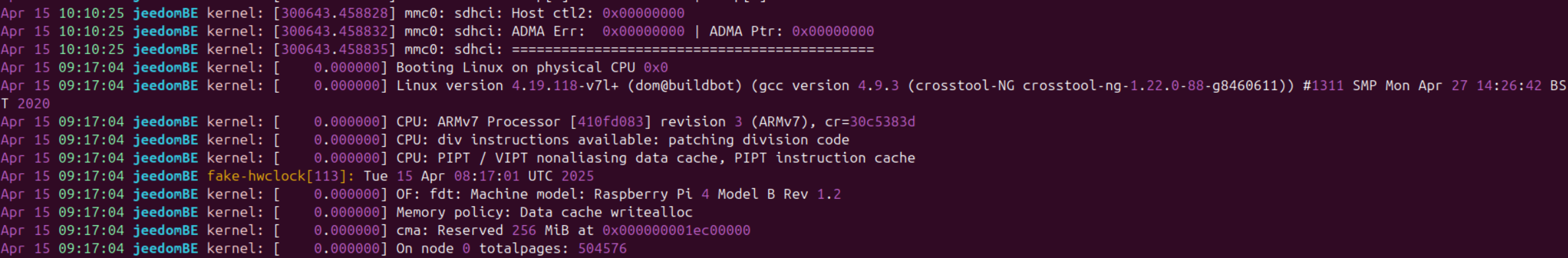 Très utile pour connaitre l’heure du plantage (c’est l’heure du reboot) avant qu’il se resynchronise avec ntp