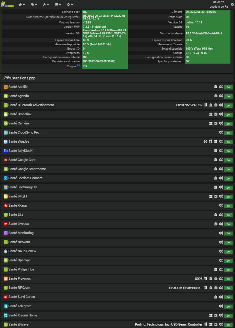 EDIT : J’ai désactivé les 2 plugins et j’ai relancé le démon du BLEA ça l’a remis opérationnel quelques secondes, puis plus rien. J’ai ensuite redémarrer Jeedom et la depuis un peu plus d’1/2 heure BLEA semble fonctionner correctement. Je vais le laisser tourner tout demain et vous dirais si c’est bon. Mais c’est un bon début