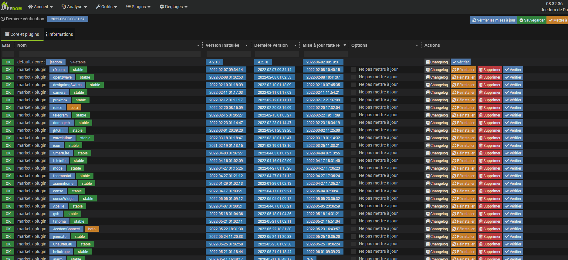 Mon BLEA a arrêté de fonctionner le 27/05. Effectivement, j’ai installé de nouveaux Plugin aux alentours de cette date : Groupe (installé le 27/05) et WifilightV2 (installé le 28/05).