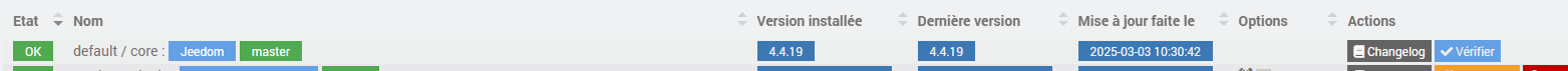 Je ne suis pas sûr de comprendre. J’ai indiqué la version de jeedom pour Franck depuis la page des mises à jour (rien à voir avec la page santé, donc). On voit la version courante et la dernière proposée, ça montre que l’install est à jour. J’ai volontairement pris la ligne du core jeedom en réponse à son commentaire.