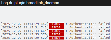 Merci dan_73 pour ce retour rapide, malheureusement ca n’a pas fonctionné pour moi, j’ai même tester la version beta du plugin sans succès. J’ai toujours dans les logs du démon « [2025-12-07 11:15:53.370] ERROR : Authentication failed ».