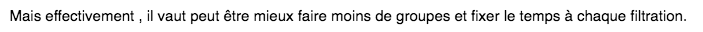 Mais effectivement , il vaut peut être mieux faire moins de groupes et fixer le temps à chaque filtration.