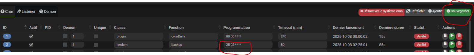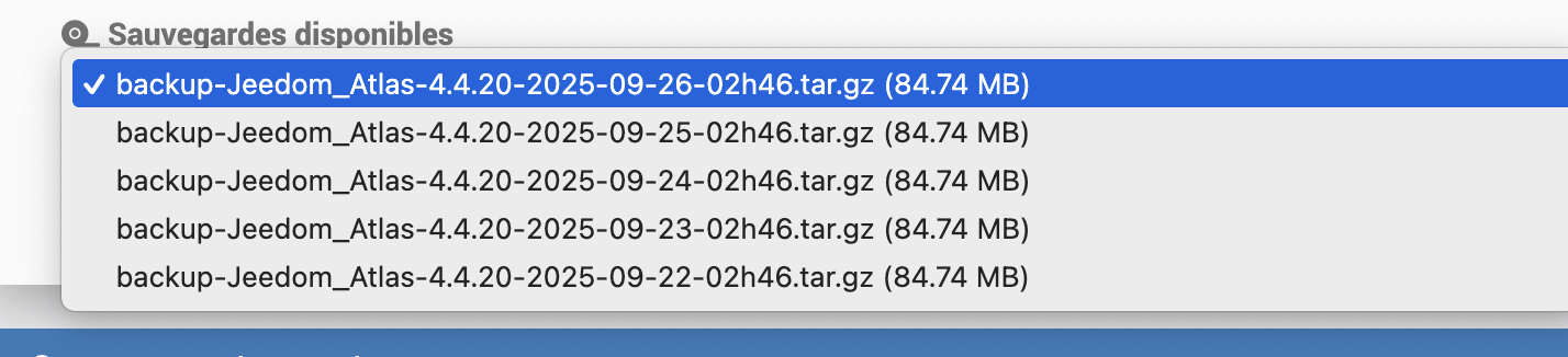 Depuis maintenant presque un an, je fais des backups sur le cloud de Jeedom, ça s’appelle « Sauvegardes Market » et c’est payant. J’ai pratiquement une fois sur 3 des erreurs de la sauvegarde quotidienne