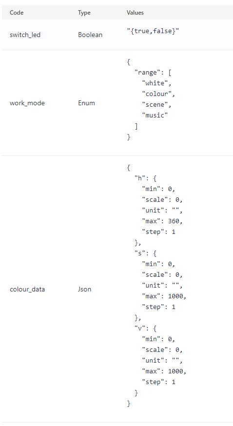 D’après le système de débogage sur tuya qui fonctionne bien pour communiquer avec mon ruban :