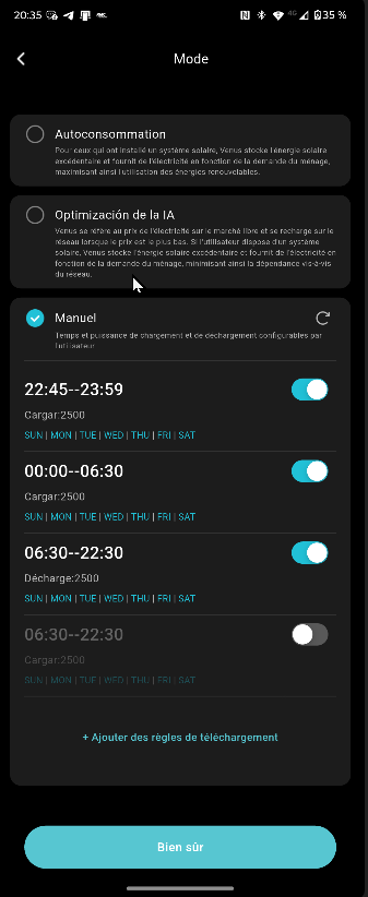 Concernant les 2 agendas, faut peut-être signaler au support marstek via l’app (feedback)