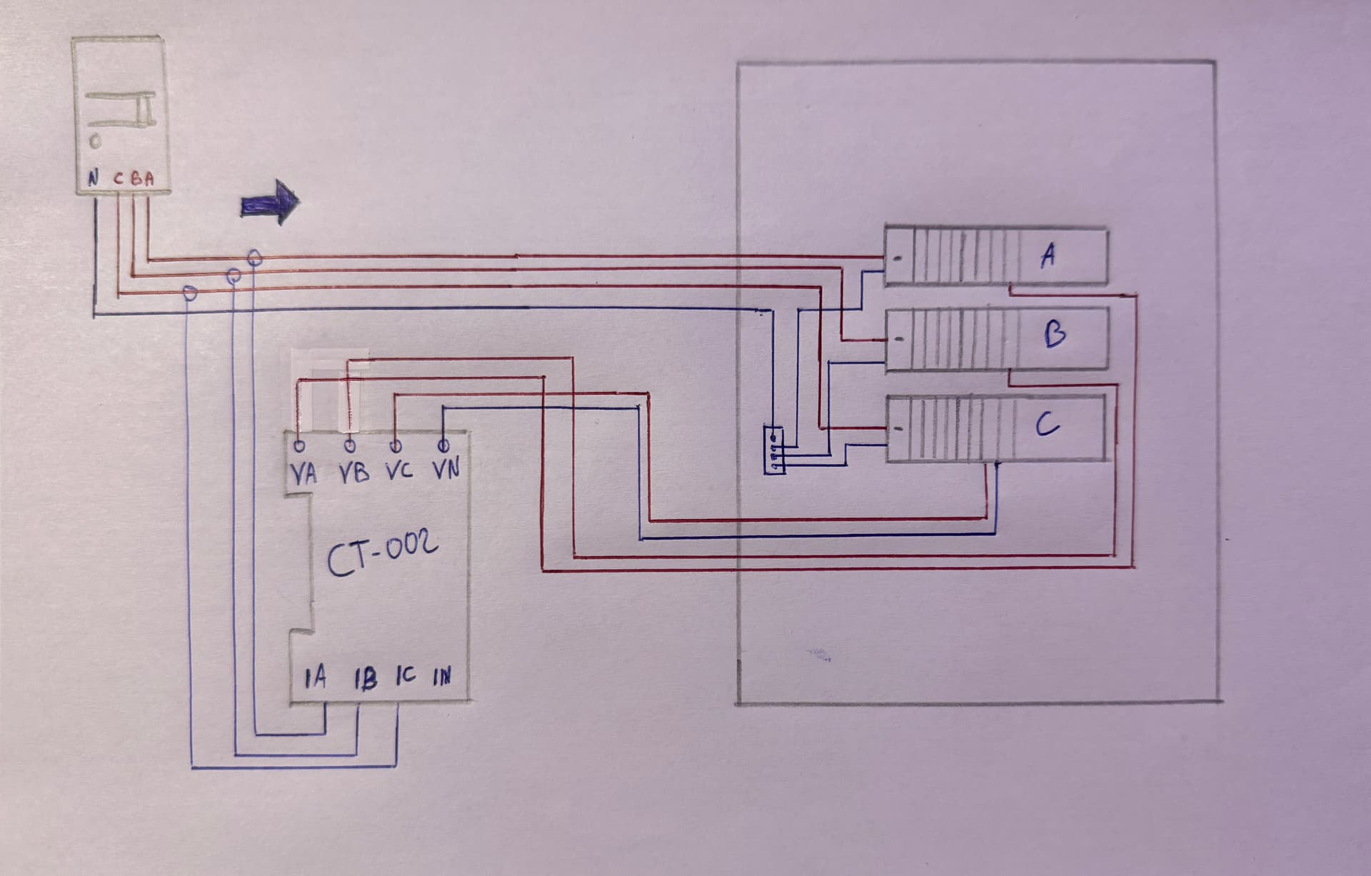 Dans ton schéma, il faut ajouter les légendes des phases A, B et C au niveau du tableau et du bas du CT liaisons pinces, pour bien comprendre… j’ai l’impression que certaines tores de mesures ne sont pas sur les bonnes phases quand on suit les lignes ?!
