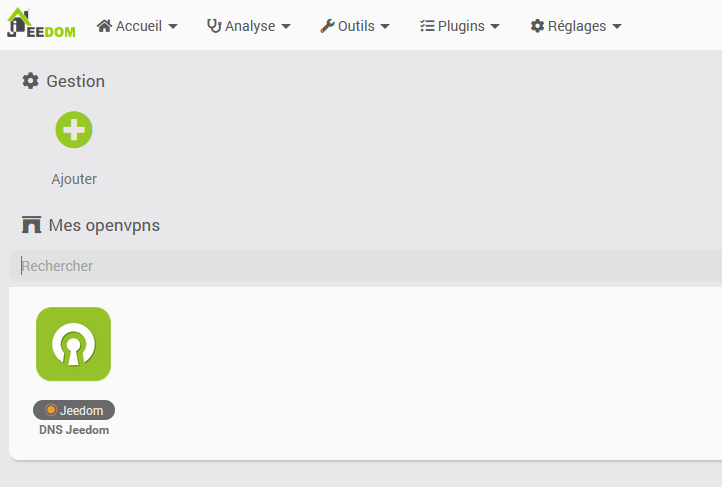Voici ce que j’ai quand je clique sur le plugin OpenVPN :