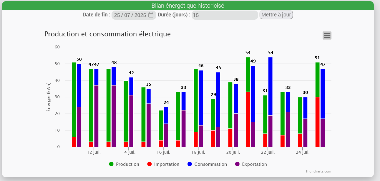 Comparé à mon linky , les mesures de ma centrale étaient plutôt inférieures en production à ce que me donnait mon compteur.