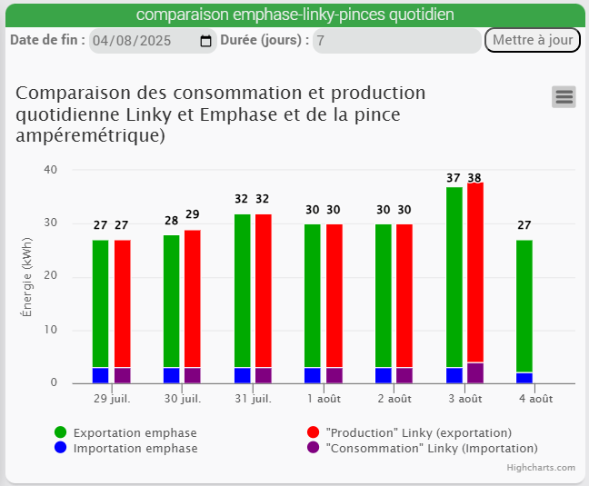 Ces mesures ne viennent pas des pinces ampèremétriques mais de la passerelle enphase elle-même. La comparaison avec les pinces et le linky, c’est encore autre chose !