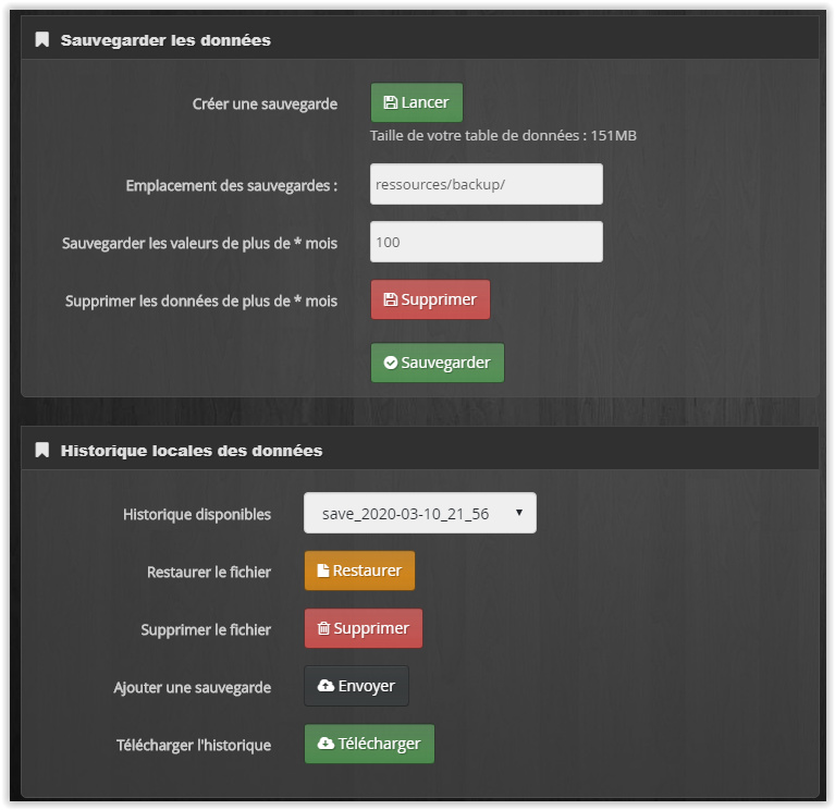 Pour la sauvegarde et restauration tu as l’onglet SAVE