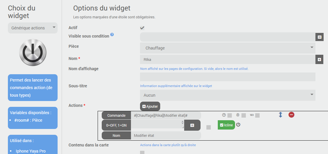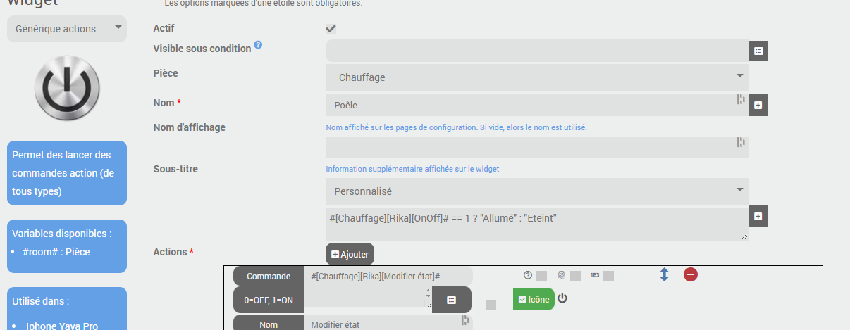 « modifier etat » → qu’on renommer « Eteindre » et pour lequel on met la valeur 0 + y mettre l’icone souhaité