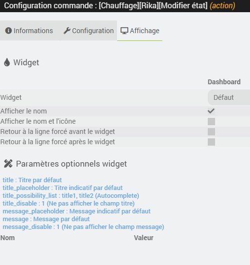 plus bas (qu’on ne voit évidemment pas sur la copie écran, puisque à nouveau screenshot partiel…) il y a une partie nommée Ajouter des infos → on ajoute la commande Rika|Statut