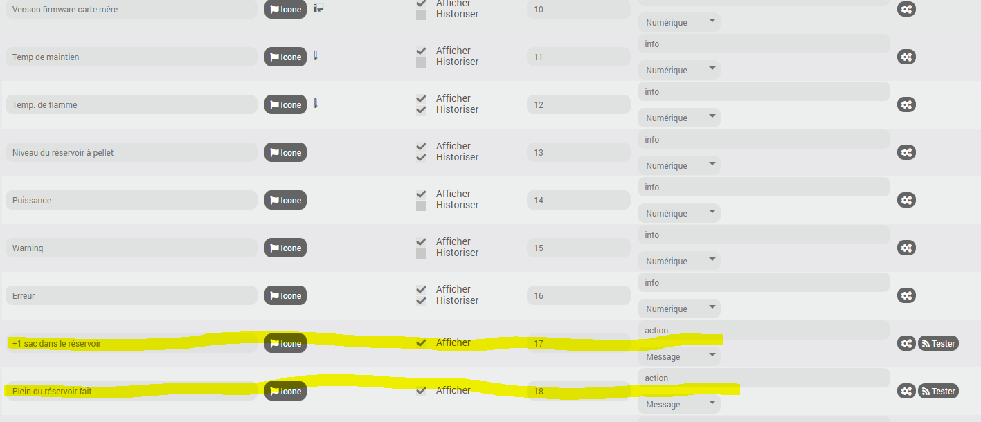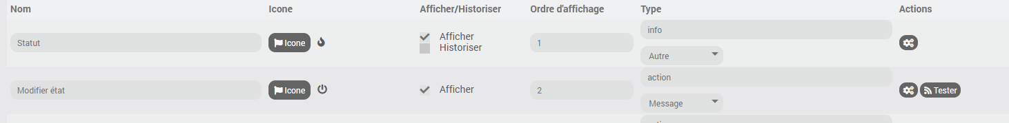 « modifier etat » → qu’on renommer « Allumer » et pour lequel on met la valeur 1 + y mettre l’icone souhaité