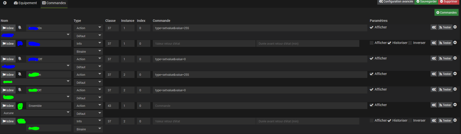donc ca va être difficile de donner le problème exacte mais les commandes sont affichées ou masquées suivant la commande état liée et leur nom (si etat=1 et commande « on », on masque etc), une liste de nom est interprété mais il faut respecter cette liste (je ne l’ai plus sous la main mais la question a été abordée de multiples fois sur le forum donc ca doit pouvoir se retrouver)