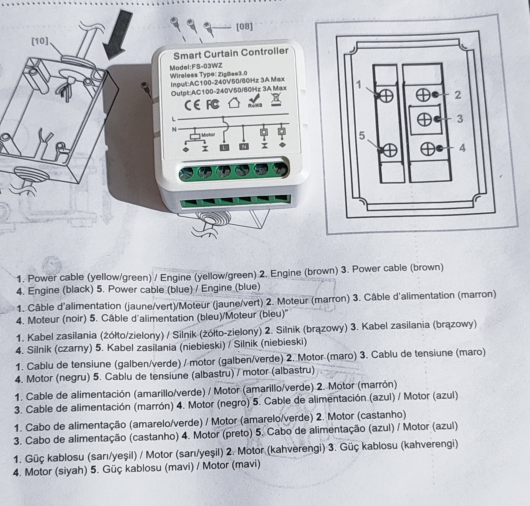J’en déduis que je dois envoyer la phase sur le marron ou noir du moteur pour monter et descendre.
