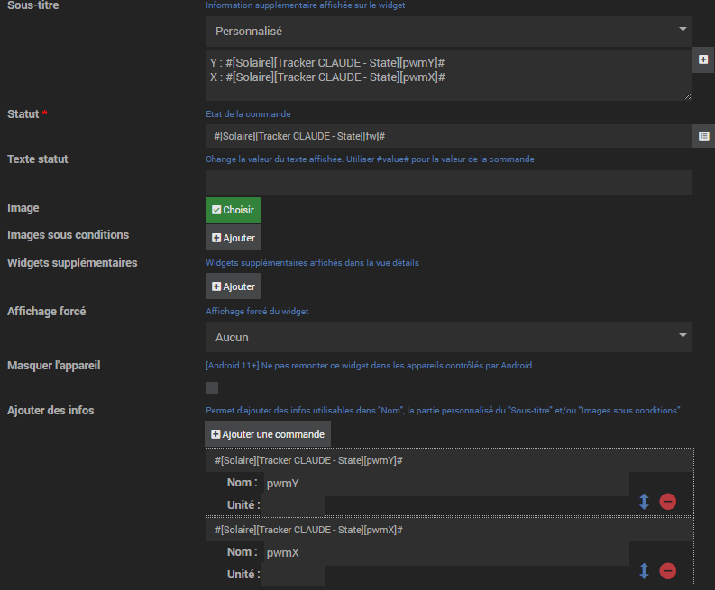 Sur un widget, qu’il soit de type générique numérique ou texte, si j’essaie d’afficher des infos dans le sous-titre, ça fonctionne uniquement si j’ajoute du texte à des endroits spécifiques.