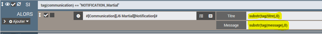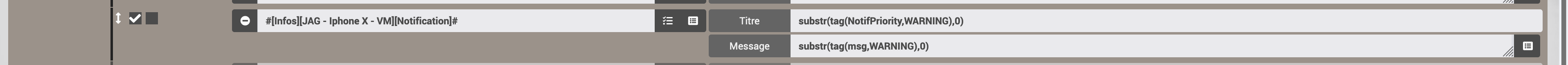 Merci pour ta solution, je confirme il faut bien utiliser substr, si on envoi des notifications par tag sur l’Application mobile jeedom. Pour les autres notifications, il n’y a pas besoin