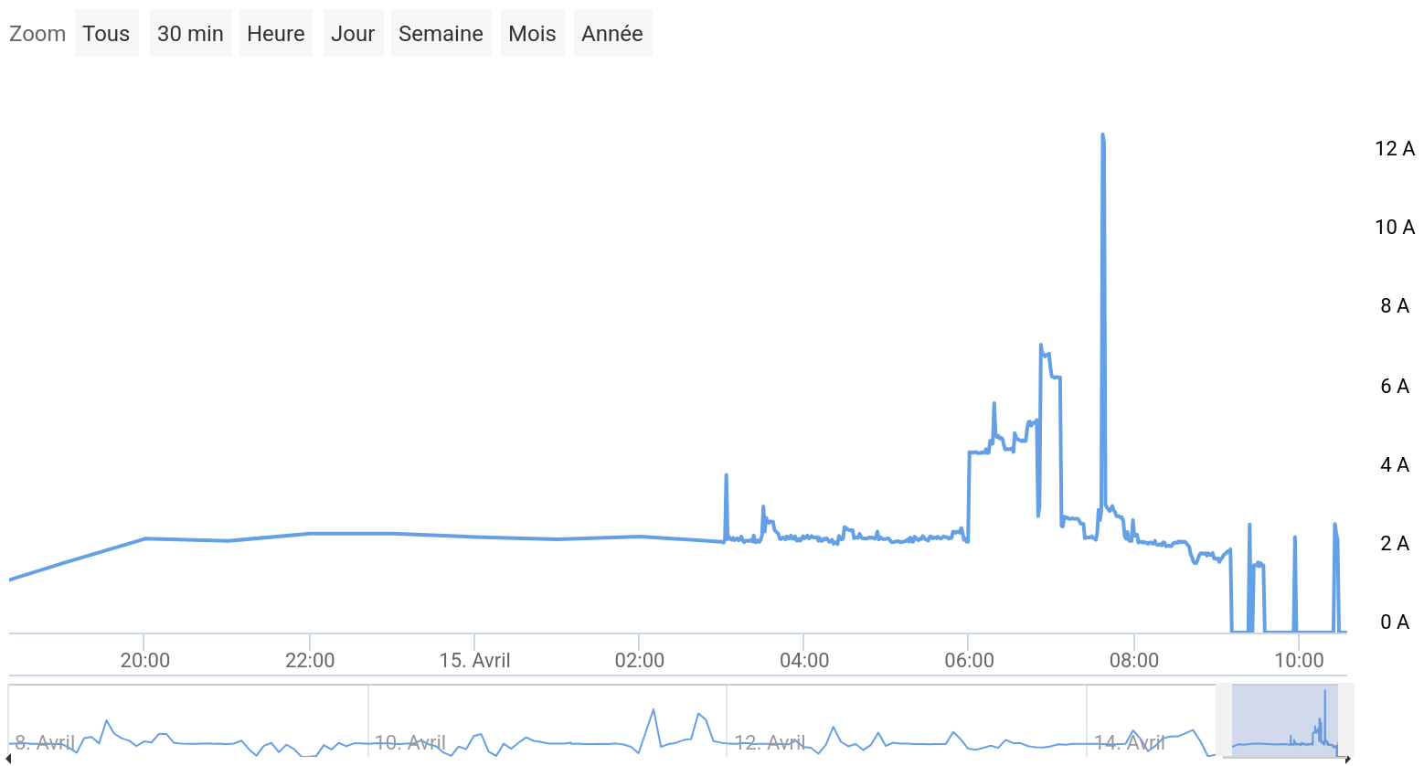 je regarde mais je n’arrive pas à comprendre ce qui peut se passer. Pour l’instant le seul lien que je vois c’est le lancement des stats de j-1 à 00h10 toutes les nuits. Comme le calcul des stats courantes s’effectuent toutes les 5 minutes alors à 00h10 il y a les 2 fonctions qui sont lancées en même temps. Je ne vois pas trop pourquoi ça ferait planter le modem mais…