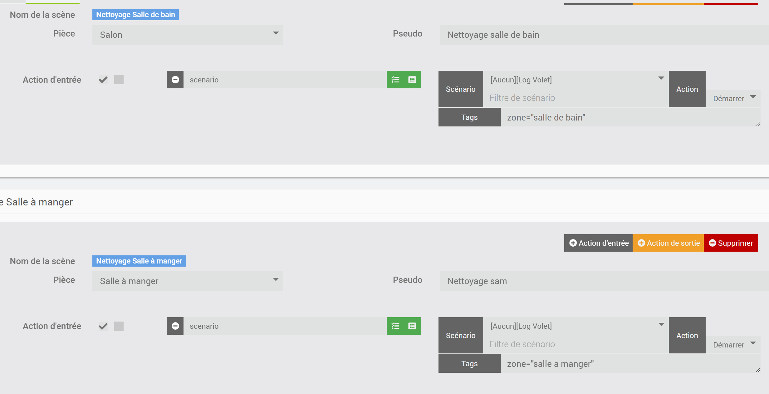 Exemple après désactivation d’un scenario utilisé dans les scènes