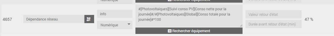 J’ai un souci avec le calcul de la dépendance réseau qui est un % en résultat. Le calcul se fait bien sauf certains jours vers 00h01mn où la valeur calculée passe à des valeurs aberrantes -1000% par exemple. Je pense que cela vient de la remise à zéro de certaines valeurs journalières qui ne se fait pas au bon moment.