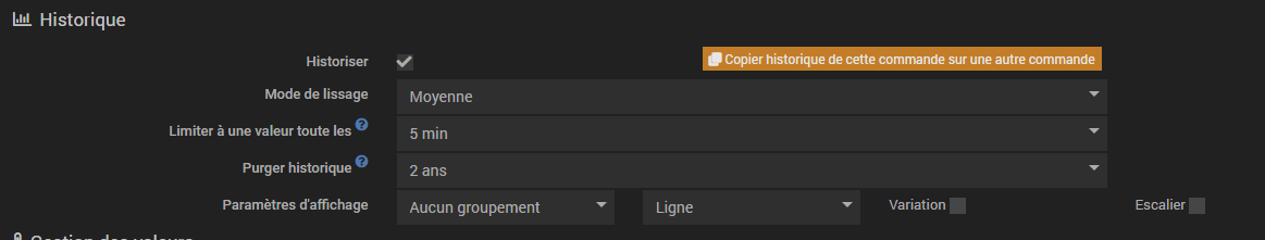 Vous pouvez configurer l’historique de cette information virtuel sur lissage : aucun