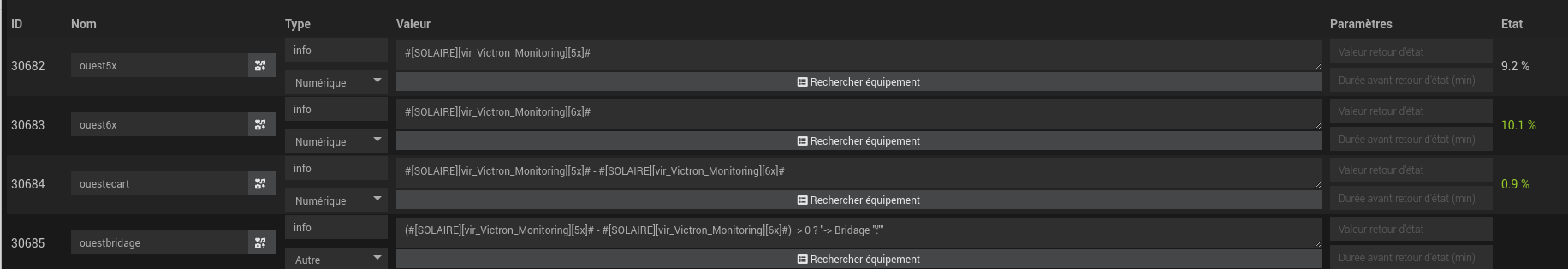 En réalité j’ai besoin de 5%. Au moment des manips le % des panneaux étant très proche, j’ai mis > 0 et >1 juste pour les tests. Quant aux guillemets, ils sont destinés à afficher une valeur vide. Je n’ai pas essayé sans.