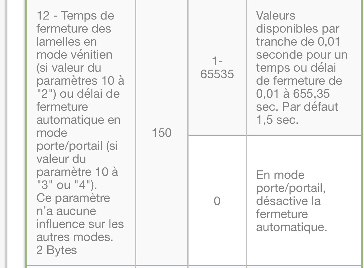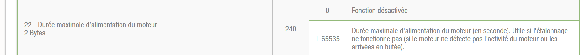 Le volet va s’arrêter a la fin de ce temps de fonctionnement.