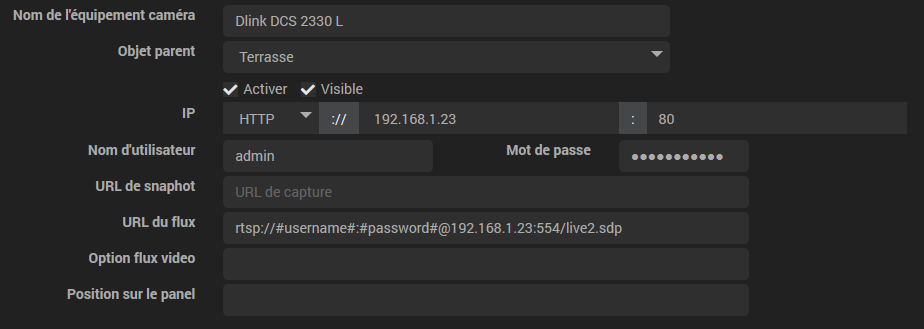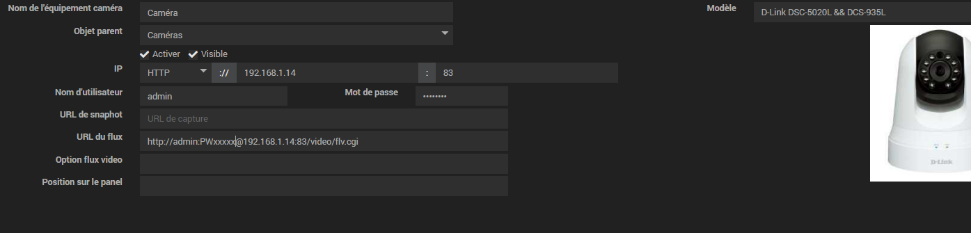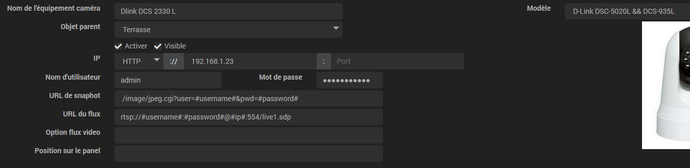 Je peine à faire fonctionner une caméra Dlink DCS 2330 L avec Jeedom.
