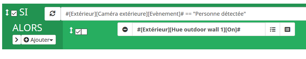 Je voudrais que, quand la caméra netatmo présence détecte une personne, le scénario déclenche l’allumage d’une lampe extérieure hue. Mais je n’y arrive pas …