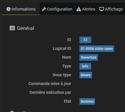 Dans Jeedom aussi, si je vais voir les informations brutes, je vois bien l’état true ou false changer sur l’état.