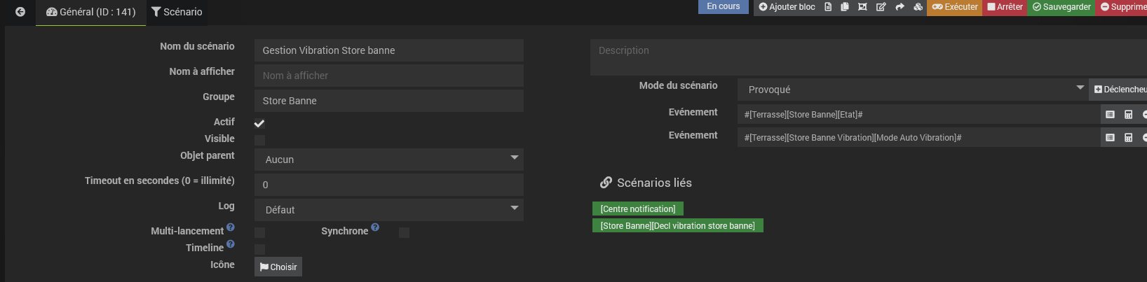 Avez vous déjà fait un scénario pour la gestion de la vibration du store ?
