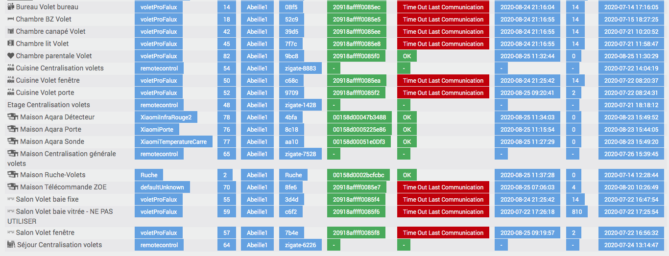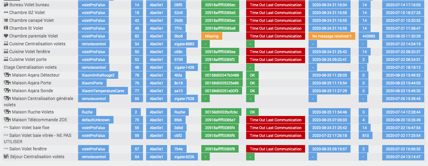 Pour la partie Xiaomi, c’est un peu plus complexe. J’ai pour ma part une 10aine de capteurs de température et certains passent en Timeout au bout de quelques jours. On a pas encore trouvé pourquoi.